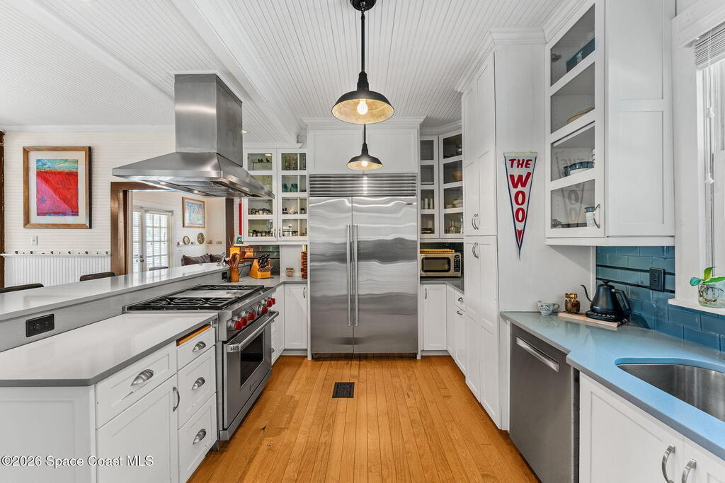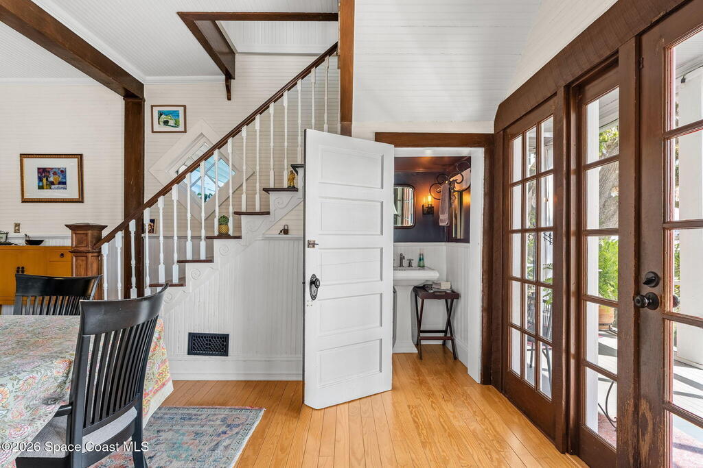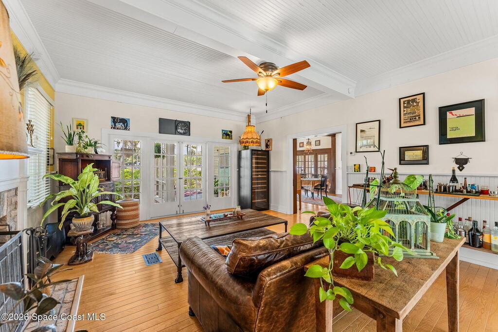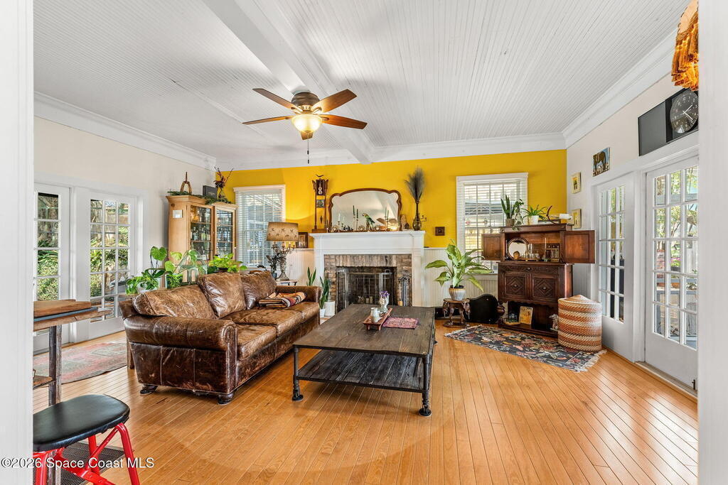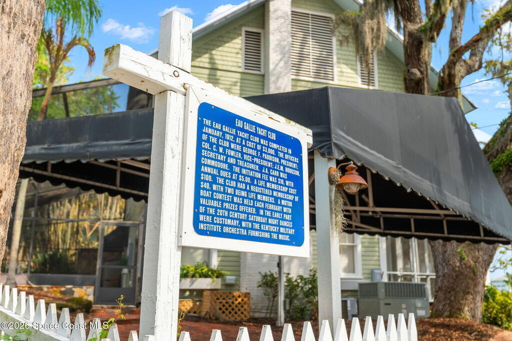 It's the best kept secret in Brevard. This waterfront historic and unique gemis located in the heart of the Eau Gallie Historic District. Walking distance to theshops, bars and restaurants of the Arts District, this amazing home was the original Eau Gallie Yacht Club, one of the oldest yacht clubs in Florida. Constructed with first generation heart cypress, this historic home has it all: two working fireplaces, a chef's kitchen, hardwood floors, porches, decks, a sparkling pool and a deep water dock on one of the most protected harbors in Brevard. The home has been completely renovated with a new metal roof (2021), new insulation (2025), Wolf dual fuel stove, Sub-Zero refrigerator and the owners favorite, a clear ice maker. Enjoy the spectacular views beneath majestic oaks on this truly special one-of-a-kind property.