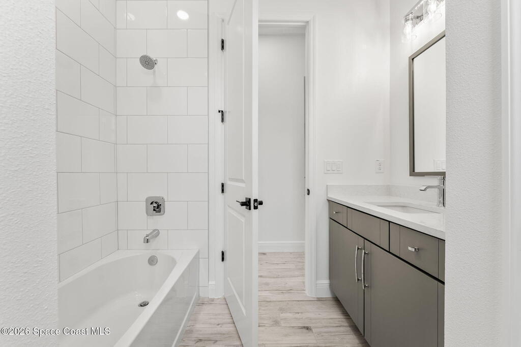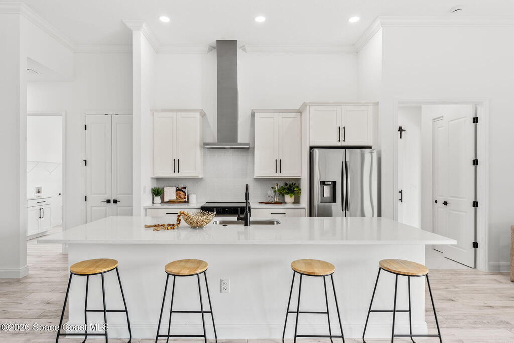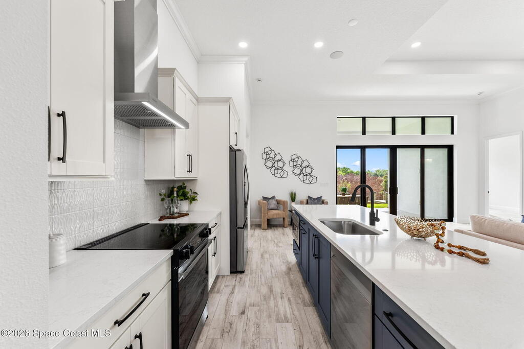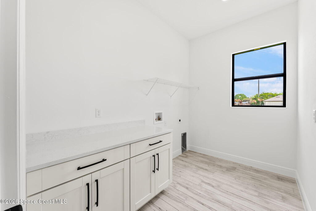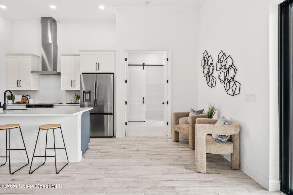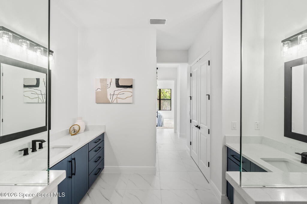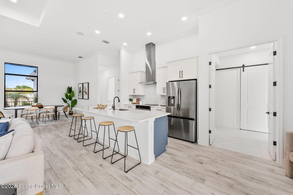 Poised along the Eau Gallie River, this newly constructed 4-bed, 3-bath residence offers a thoughtful balance of craftsmanship, comfort, & understated luxury across 2, 400 sq ft. Framed by tranquil conservation views & complemented by a shared dock w/ the opportunity to secure a private boat slip, the setting invites a seamless connection to the water. W/in a gated enclave defined by manicured grounds, green space, & resort-style amenities, the home reflects a refined approach to modern living, featuring 10' ceilings, 8' six-panel doors, impact windows, plank tile flooring, & a well-appointed kitchen w/ premium appliances & soft-close cabinetry. Spa-inspired baths w/ floor-to-ceiling tile enhance the sense of retreat, while a pavered driveway & fresh landscaping create a polished first impression. The backyard offers both privacy & potential, w/ room for a pool or expanded outdoor living overlooking the river. Just moments from Eau Gallie Arts District, beaches, Melbourne Airport & I-95