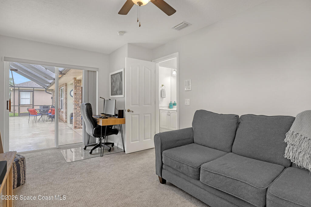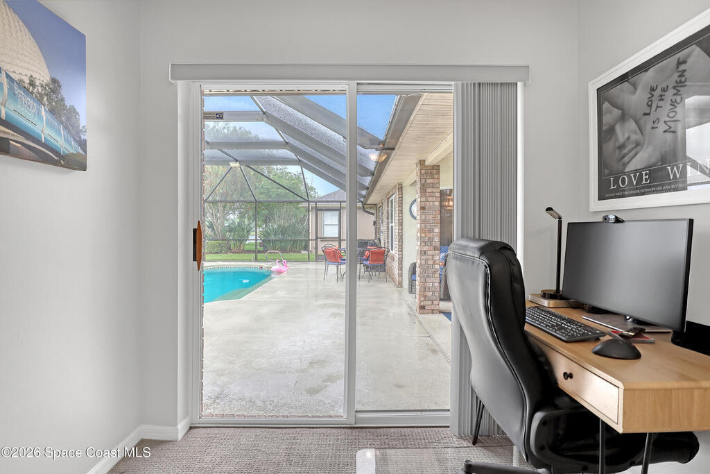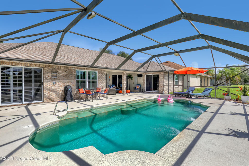 Welcome to this charming 4-bedroom, 2.5-bath pool home with a spacious den, perfectly situated on a tranquil water view lot in the highly sought-after Forest Creek community. From the moment you enter, you're greeted with a stunning view of the screened pool and serene pond beyond creating an immediate sense of relaxation and home. This well-maintained property features plantation shutters throughout, tile flooring in the main living areas, new carpet in the bedrooms, and fresh interior paint for a move-in ready experience. Enjoy peace of mind with major updates already completed, including Hurricane windows 2025 with transferable warranty, a 2022 roof and gutters and a 2023 A/C system.Step outside to your private screened pool area, where you can unwind with breathtaking sunset views in the evening or start your day with coffee while watching ducks and sandhill cranes by the water.Conveniently located just minutes from L3Harris, Florida Institute of Technology, shopping,