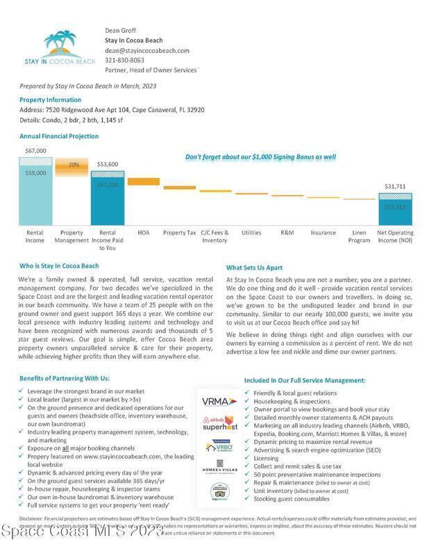 Tropical Investment Gem: Fully-furnished WEEKLY rental in one of the Space Coast's top-rated bnb hotspots! This 2-bed, 2-bath coastal retreat features stylish tile floors, beautifully updated bathrooms, and the convenience of an in-unit washer & dryer plus a premium assigned parking spot. Located on the easily accessible ground floor, step right out your door to the heated oceanfront pool or stroll to the private beach access for sunrise walks. Canaveral Towers offers on-site management and a dedicated rental office to make ownership seemingly effortless. Enjoy resort-style amenities including a sparkling pool, putting green, shuffleboard, and direct beachfront views. Guests will love the unbeatable location near Port Canaveral's cruise terminals, world-class dining, local attractions, shopping, and just an hour to Disney. Whether you're relaxing in paradise or collecting income, this turnkey coastal escape delivers on every level!