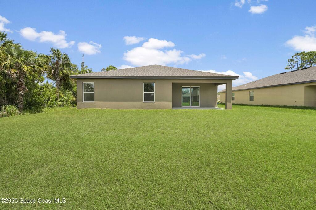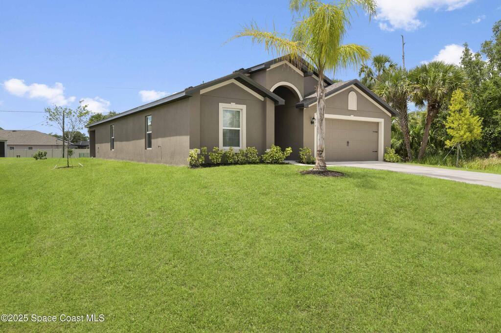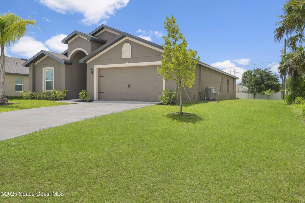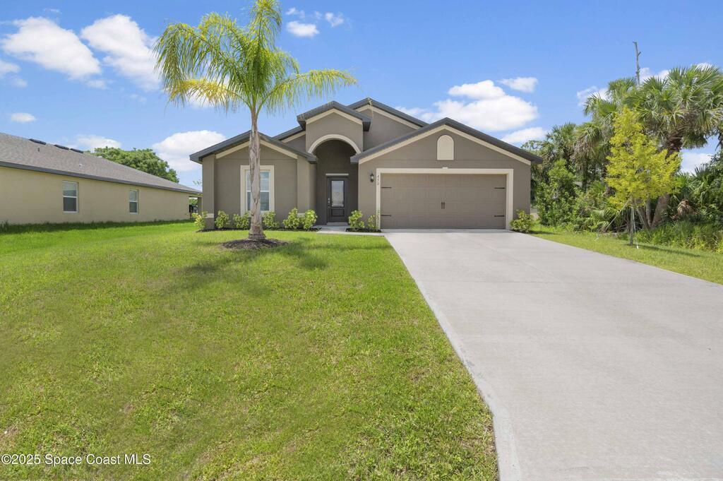 Ask us about our incentives, builder paid closing costs, & no down payment options! The Estero II floor plan serves as a spacious home for families and guests. Featuring an open concept floor plan, the home boasts 4 spacious bedrooms, 2 full bathrooms and is complete with over $10, 000 in upgrades. These include energy-efficient Whirlpool(r) appliances, spacious granite countertops in the kitchen, stunning wood cabinets, brushed nickel hardware and an attached two-car garage. In addition, the Estero's secluded master retreat highlights a large walk-in closet. Best of all, this Palm Bay home offers residents a premier location with convenient access to nearby shopping, golf courses, world-class area beaches and amenity-packed parks This home is located next to other new builds and on a lovely street in a peaceful neighborhood. **appliance models are subject to availability**